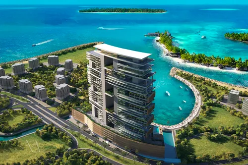 and kids’ splash pool - Ground-level retail, dining, and supermarket options - Guest